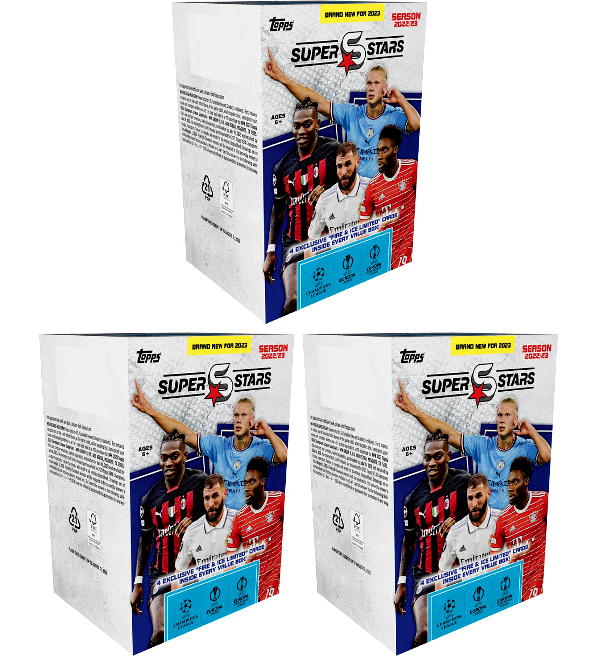 Karty kolekcjonerskie Topps UCL Superstars Sezon 2022/23 - 3 x wartościowe pudełko