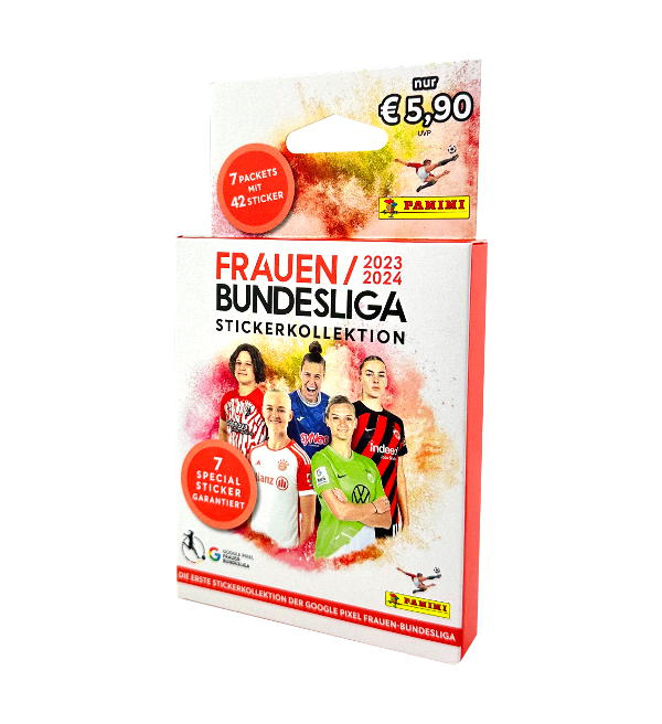 Naklejki Panini Bundesliga Kobiet 2023-2024 Eco-Blister (=7 saszetki). Każde saszetka zawiera 6 naklejek.