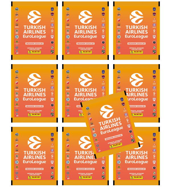 Naklejki Panini Turkish Airlines EuroLeague 2024-25 - 10 saszetki. Każde saszetka zawiera 5 naklejek.