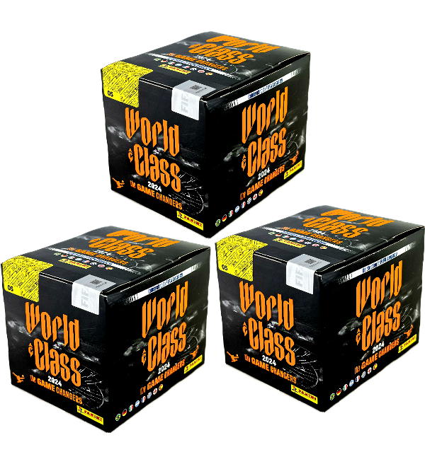 3 pudełks (=150 saszetki) z kolekcji naklejki "Panini World Class 2024". Każde saszetka zawiera 5 naklejek.