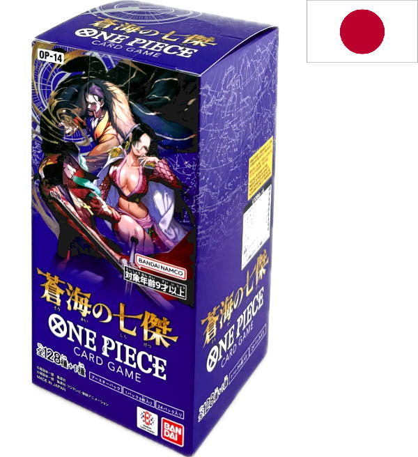 Box z 24 saszetki (=144 kart) do kolekcji kart "One Piece Card Game - The Seven Warlords of the Sea OP-14" (wersja japońska). Każde saszetka zawiera 6 kart.