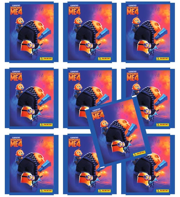 Naklejki "Panini Despicable Me 4" - 10 saszetki. Każde saszetka zawiera 5 naklejek.