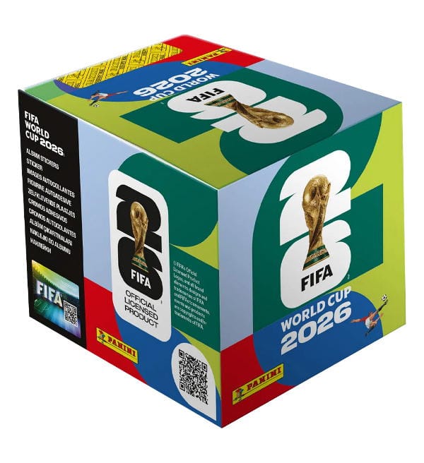 Box z 50 saszetki do kolekcji naklejki "Panini FIFA World Cup 2026". Każde saszetka zawiera 7 naklejek.