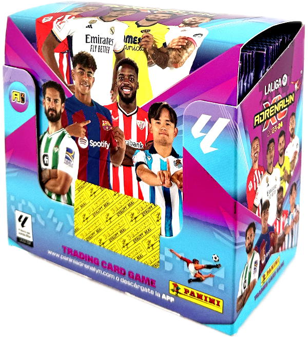 Panini LaLiga Adrenalyn XL 2023-24 Trading Cards - box z 50 saszetki (=300 kart). Każde saszetka zawiera 6 kart.