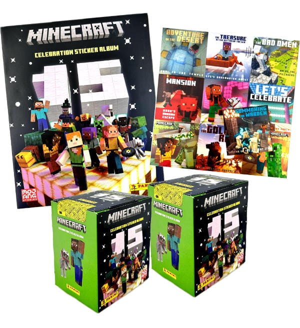 Mega-Bundle do kolekcji naklejki "Panini Minecraft Celebration (2024)" zawierająca: