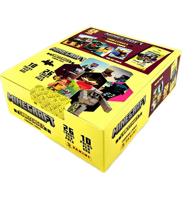Panini Minecraft 4 CHALLENGES Trading Cards Fatpack box z 10 saszetki. Każde saszetka zawiera 24 kart + 2 Bonus Cards.