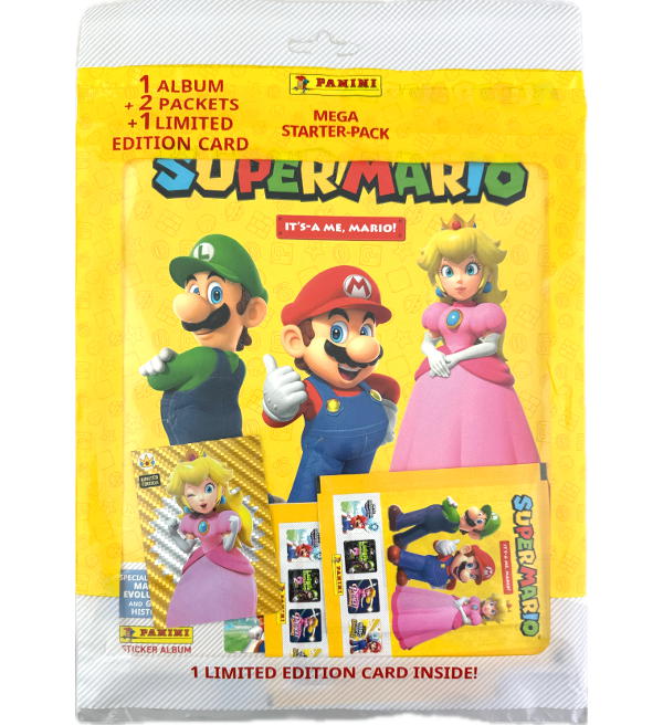 Starter Pack do kolekcji naklejki "Panini Super Mario - It's-a Me Mario" zawierająca: