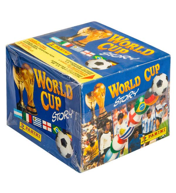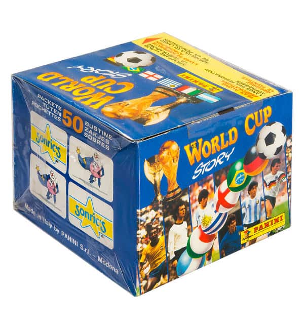 Box z 50 saszetki do kolekcji naklejki "Panini World Cup Story (1990)". Każde saszetka zawiera 4 naklejek.
