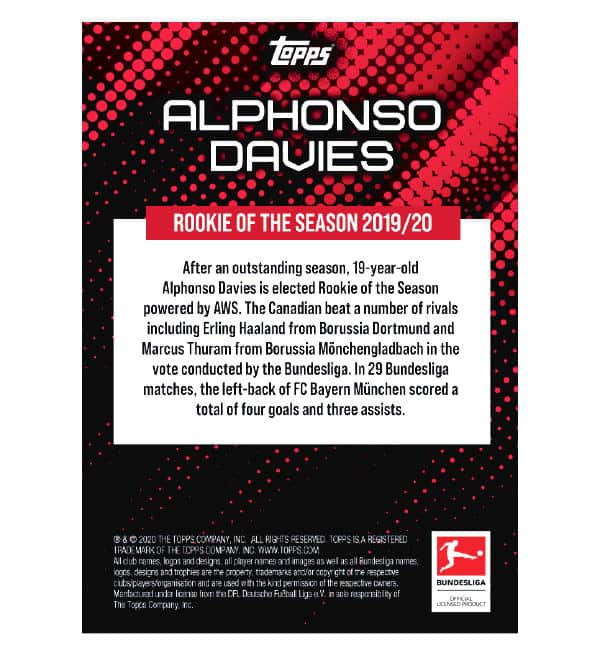 Topps Alphonso Davies Rookie of the Season 19/20 Autogramm Card #43/50
