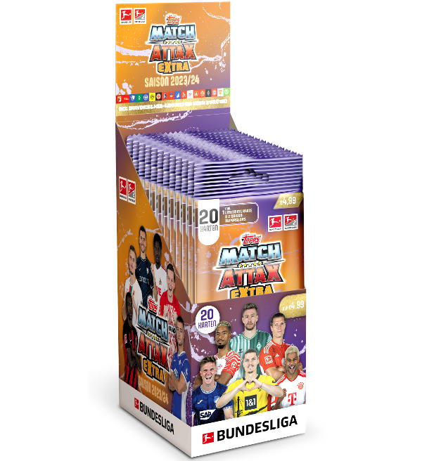 Box Fatpack z 12 saszetki (=228 kart + 12 Limited Edition Cards) do kolekcji kart "Topps Bundesliga Match Attax EXTRA 2023/24".