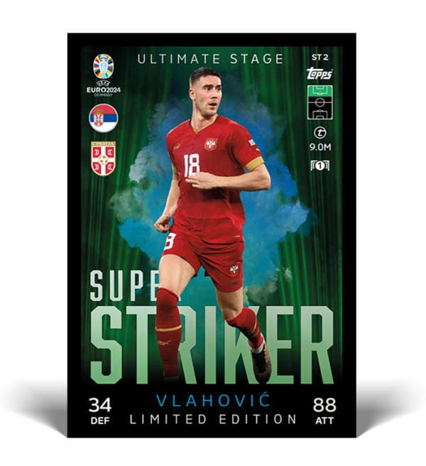 Booster Tin Set do kolekcji kart "Topps EURO 2024 Match Attax". Każda puszka zawiera 28 kart + 3 Exclusive Limited Edition Cards. Uwzględniono te 3 motywy: